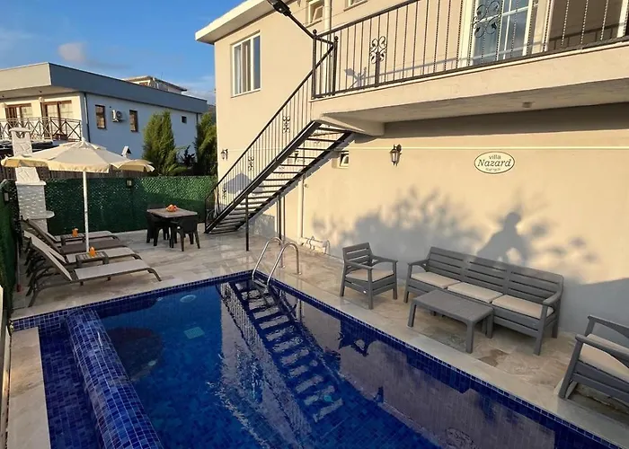 La Villa Nazard Kaş se encuentra a solo a unos 4 km de la Tumba del Rey y cuenta con una piscina en una terraza para disfrutar de una estancia agradable.